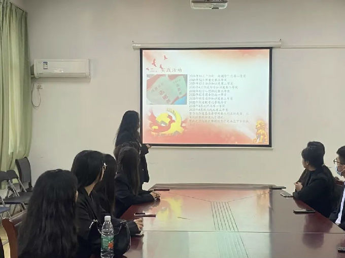 答辩分为自我陈述和提问答辩两个环节,答辩人按照答辩次序,以PPT的形式分别从个人基本情况、理论学习、入党动机、先锋模范作用发挥等方面阐述了自身发展情况,并对自身的存在的不足以及未来努力方向作了剖析与规划。评审老师则结合学习、工作、生活中的现实问题,从党章、党史以及党的二十大理论知识等方面对答辩人进行提问考察与回答。评审老师们结合答辩同学的综合表现,公平公正公开地进行评定。