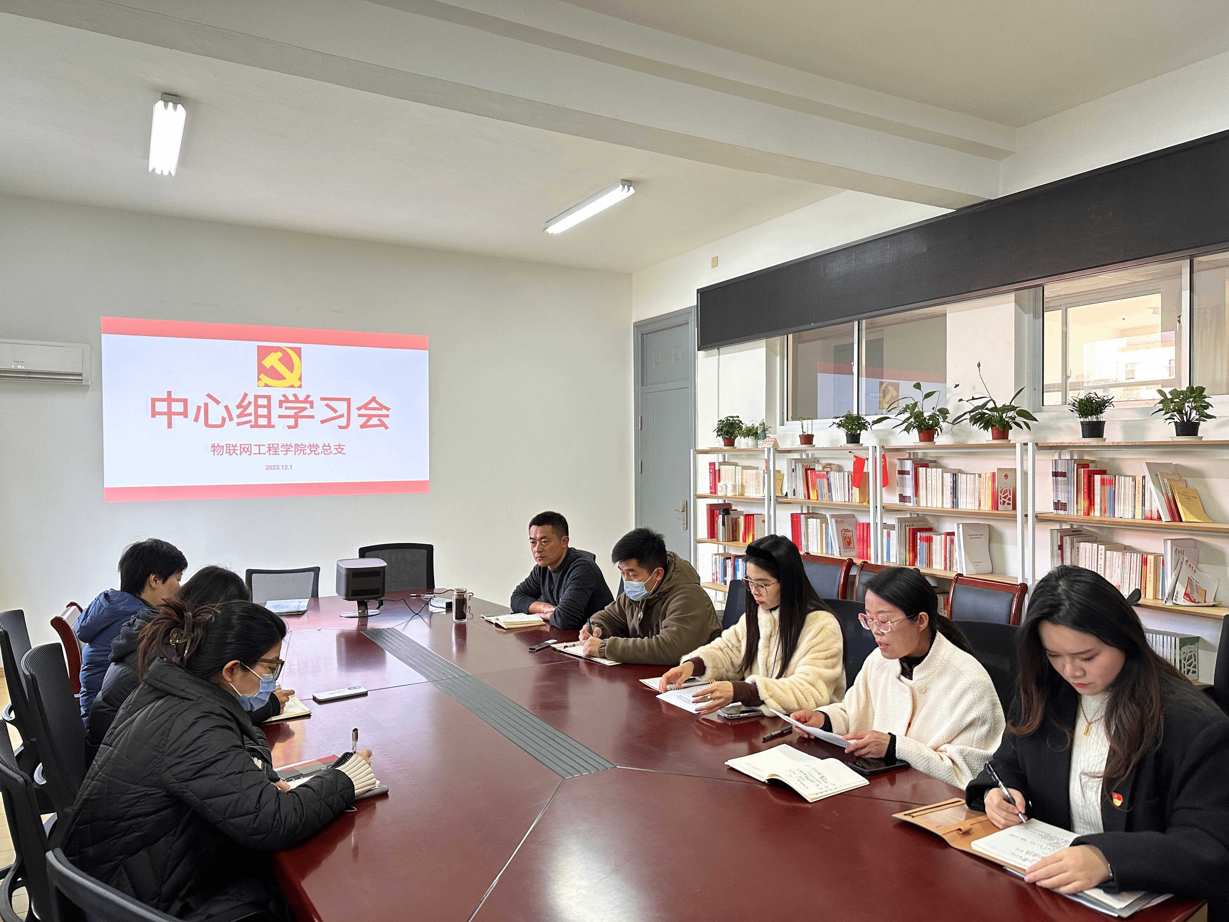 12月1日上午9:30,物联网工程学院党总支中心组全体成员在13号楼310会议室召开学习会。