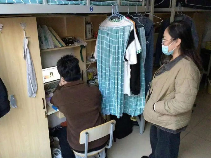 学院领导和老师们分组逐一走访了学院每一个学生宿舍。走访过程中,学院领导和老师们详细了解了同学们的学习生活情况,强调了宿舍安全文明卫生的重要性,强调了防范电信诈骗的重要性,并叮嘱同学们天气渐凉,不要因为贪图方便而使用违章电器。余书记与同学们沟通交流时表示,宿舍是同学们在校学习生活的“家”,要共同营造好的氛围和环境,要珍惜舍友之间的情谊,有困难和问题及时向辅导员和学院反映,学院会及时处理。