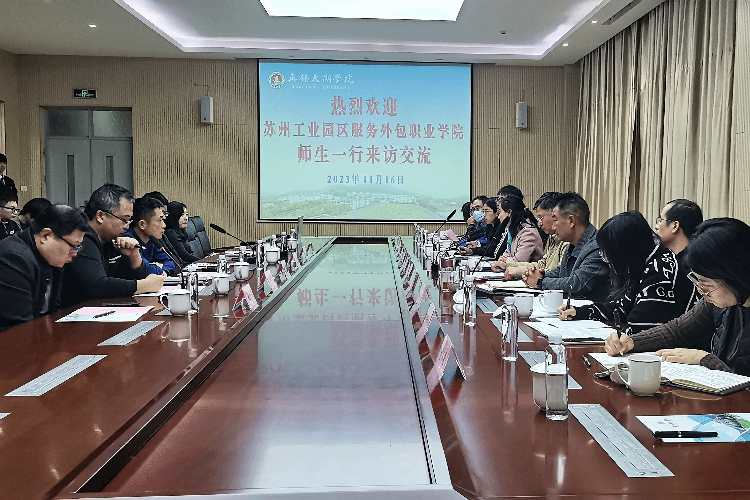 11月16日上午,苏州外包职业技术学院“嵌入式技术应用”和“软件技术”两个专业一行61人来beat365官网。本次访学项目针对苏州工业园区服务外包职业学院“3+2转段培养”的所有参与师生。物联网工程学院常务副院长成本茂、书记沈峰、产学研副院长方宁生、教学副院长王华君、物联网工程专业负责人姚湘和软件工程专业姚晓峰参加本次座谈。