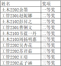活动的最后,在智能建造学院学生分会的大力支持下,秉承公平公正的比赛原则,最终评出一等奖1名,二等奖4名,三等奖5名和优秀奖4名。