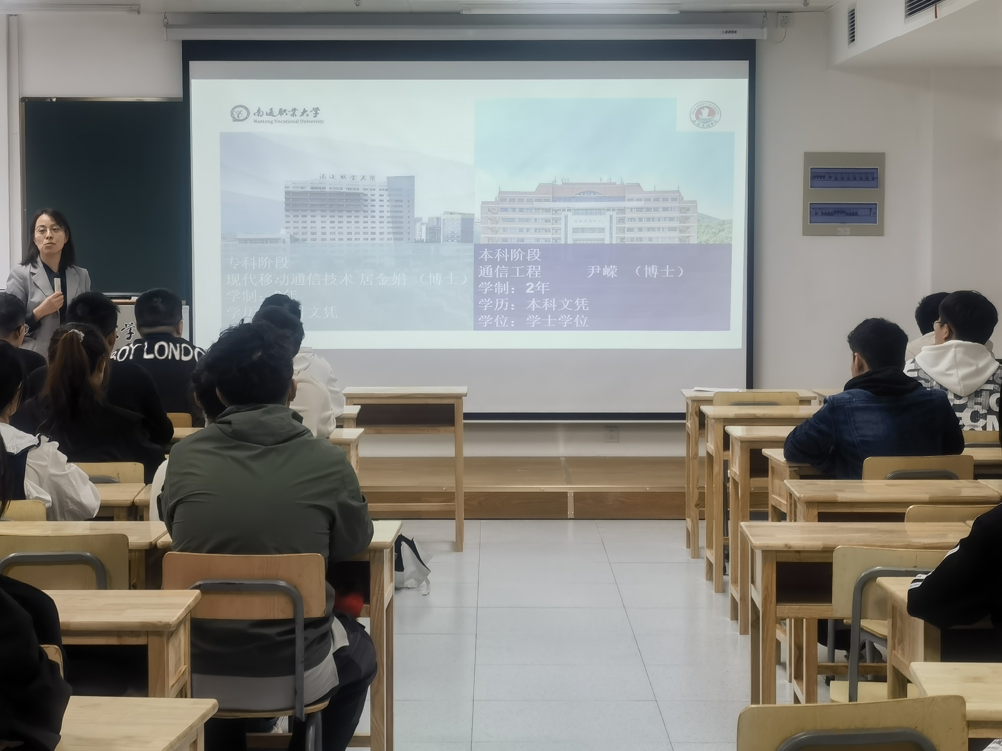 此次新生入学教育由南通职业大学通信专业负责人居金娟老师主持。她首先介绍了3+2项目的基本情况,并详细介绍了专科3年的学习情况和注意事项。接下来尹嵘老师详细介绍了beat365在线唯一官网物联网工程学院通信专业的发展历程、专业特色以及就业前景等方面的情况,为南通职业大学的新生提供了全面的了解和参考。