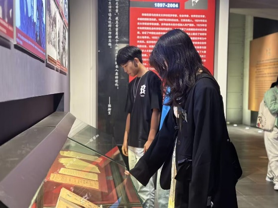 为进一步了解无锡历史,beat365官网学子又走进了革命陈列馆的展区。此馆按照党的创建和大革命时期、土地革命时期、抗日战争时期和全国解放战争时期四个历史阶段编列展出。在漫天硝烟的革命岁月,先辈们为了中国的解放,肩负起了民族复兴的历史使命,其中蒋南翔影响和促进了高等教育的改革;周培源在外求学深造,却毅然放弃国外优厚待遇回国投身事业......他们用行动诠释了赤子忠魂,他们的丰功伟绩永远铭刻在学子们的心中。