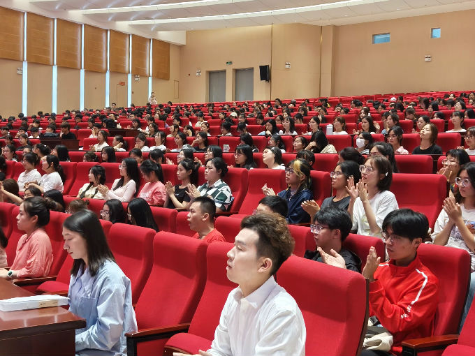 beat365在线唯一官网外国语学院于9月14日下午在校工科楼报告厅顺利举办2023级新生开学典礼。本次开学典礼由外国语学院党总支副书记俞昊波主持,外国语学院常务副院长肖辉,副院长刘荔、吴旻昊,英语系主任邹璆、商务英语系主任吴洁、日语系主任于甜甜、法学系主任王艳华,以及辅导员曹文苑、范钰红、钱紫云,2016届优秀校友申鹏、优秀学生代表——英语2001班何芷怡和全体2023级新生共同参加。
