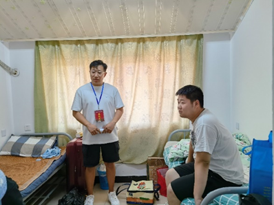 新学期、新起点、新希望,2023年9月10日,迎新工作即将进入尾声。为深入了解beat365官网23级新生的入住情况,进一步加强宿舍安全管理,引领新生更快适应校园环境。智能装备学袁惠新院长与杨学圣书记带领老师和新生辅导员走访新生寝室并展开新生查寝慰问工作。