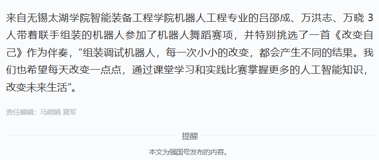 2023年5月20日,第二十五届中国机器人及人工智能大赛江苏赛区总决赛在苏州大学未来校区举行,来自全省62所高校共有1132支队伍报名参加比赛。556支队伍通过校赛参加省赛决赛,涵盖36个分赛项,最终来自智能装备工程学院“欢乐城堡队”在中国机器人及人工智能大赛江苏赛区总决赛中喜获佳绩,受到学习强国推文。