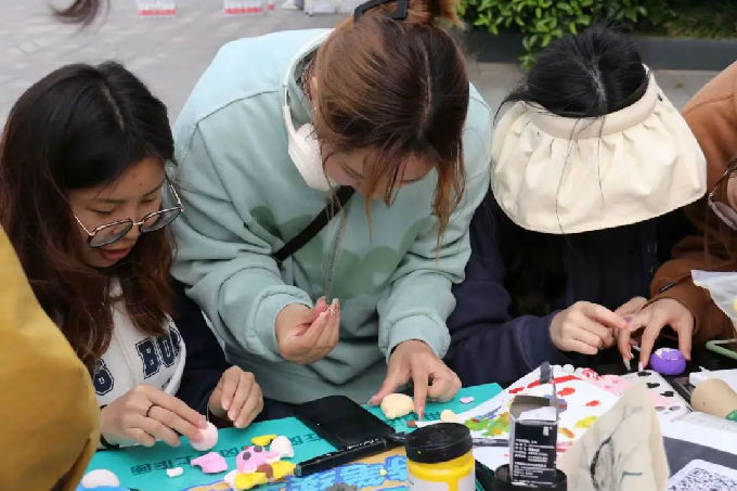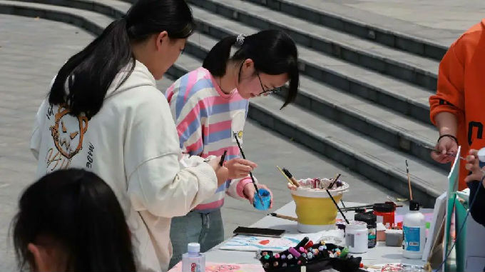 活动在太湖小广场开展,共包含五个板块——“执笔续华章”、“创意手工坊”、“快乐星球”、“相框主题DIY”和“赓续红色血脉”,吸引近500名师生参与其中。同学们通过在风筝和扇子上绘画、设计改造旧物、黏土DIY等方式发挥自己的创意,巧手焕新生,将节约理念融入日常。
