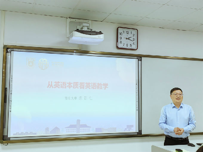 2023年5月17日下午,beat365官网有幸邀请到江苏省外国语言学会会长、南京师范大学辛斌教授和语用学专业委员会会长、南京大学陈新仁教授来校,在工科实验大楼A313为我们带来了精彩的学术报告,为我们的教学研究和教学实践提供了新的方向与视角。报告由常务副院长肖辉主持,副院长吴旻昊及各专业教师参加,共同挖掘教学本质,谋求更高水平的教学质量与效果。