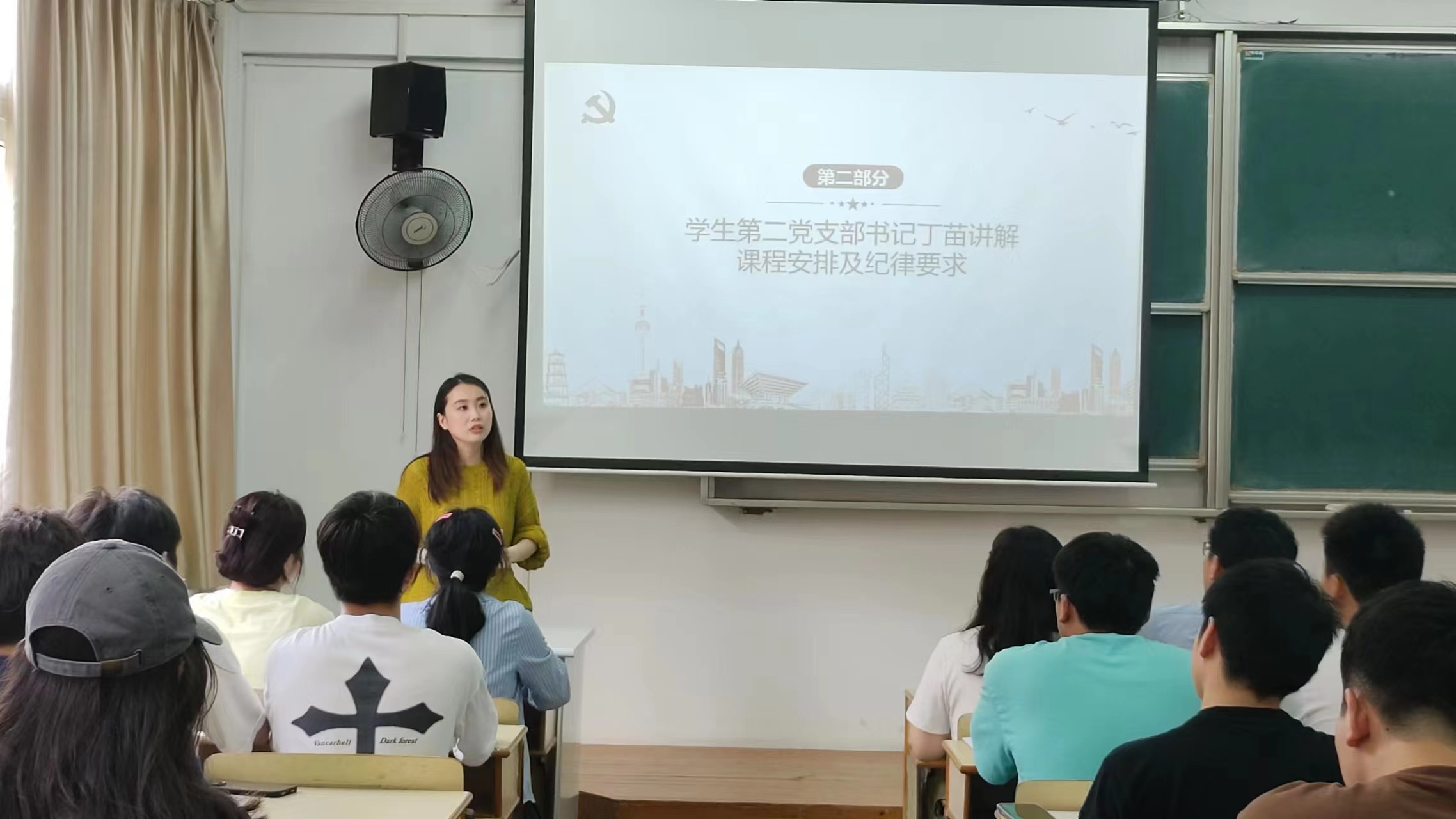 随后,学生第二党支部书记丁苗为大家讲解培训班的课程安排以及各项纪律和考核要求。