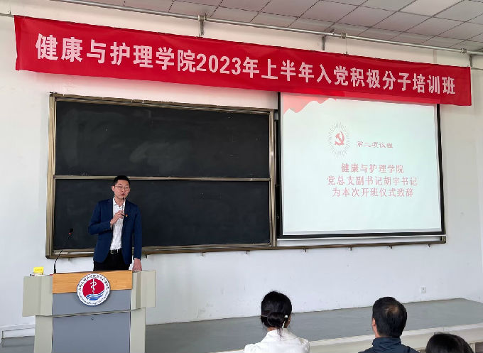 为贯彻落实习近平新时代中国特色社会主义思想,提高入党积极分子的思想觉悟和政治素养,深入党史学习教育,加强党性教育,提高党性修养。2023年5月9日中午12:30,健康与护理学院2023年上半年入党积极分子培训班开班仪式于5号楼318教室顺利举行。