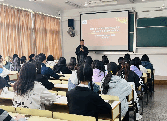 第一期党课分为两个板块,首先由外国语学院党总支副书记俞昊波发表开班讲话并结合习近平新时代中国特色社会主义思想、如何做好一名真正的共产党员授课。俞书记指出入党积极分子不仅要做到成绩优异,也要思想端正、品行兼优。入党积极分子要做好班级、社团等每一个集体的带头作用,要遵循德智体美劳全面发展,不断发掘自身能力,提高自身综合素质。作为一名入党积极分子更应该严于律己,坚定学习信念,充分体现先进性。乐于助人,积极帮助有需求的同学,要做到将个人梦想与国家命运相融合,俞书记在讲述完对入党积极分子的要求之后,还强调了对入党积极分子的的期望:“希望在班级中,能涌现出为校为院争取荣誉,追求平凡中的挺立。”