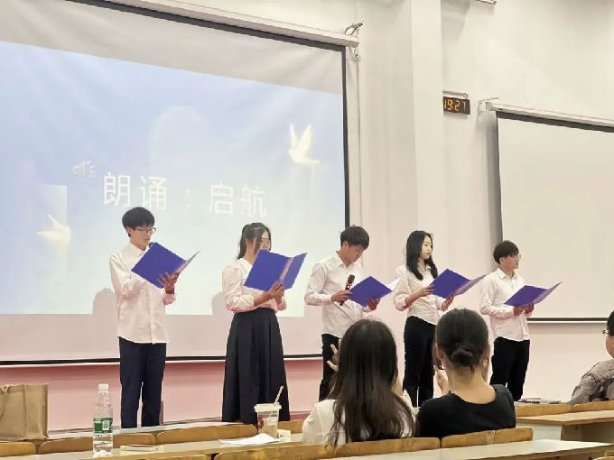 最后,则是由几位同学带来的朗诵《启航》。“扬起理想风帆,启航梦想人生”,台上同学激昂的声音伴随着舒缓的声音,别有一番意境。从他们的朗诵中,我们听出了永不熄灭的希望,听出了未来在对我们的殷切召唤!