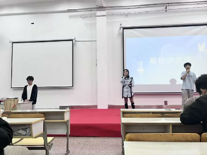 经过前面几位同学的分享,我们感受颇多,下面则邀请了工管2102李欣梅、土木2202雷升、土木2203胡仕杰带来歌曲《最初的梦想》,告诉各位同学需不忘初心,牢记使命。