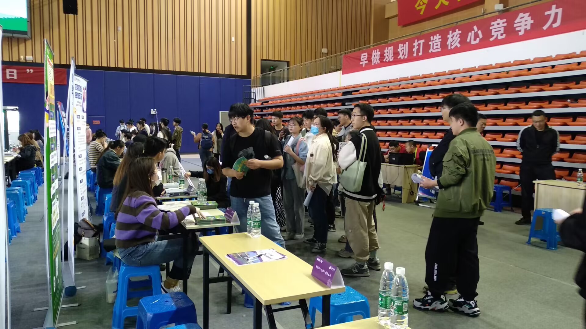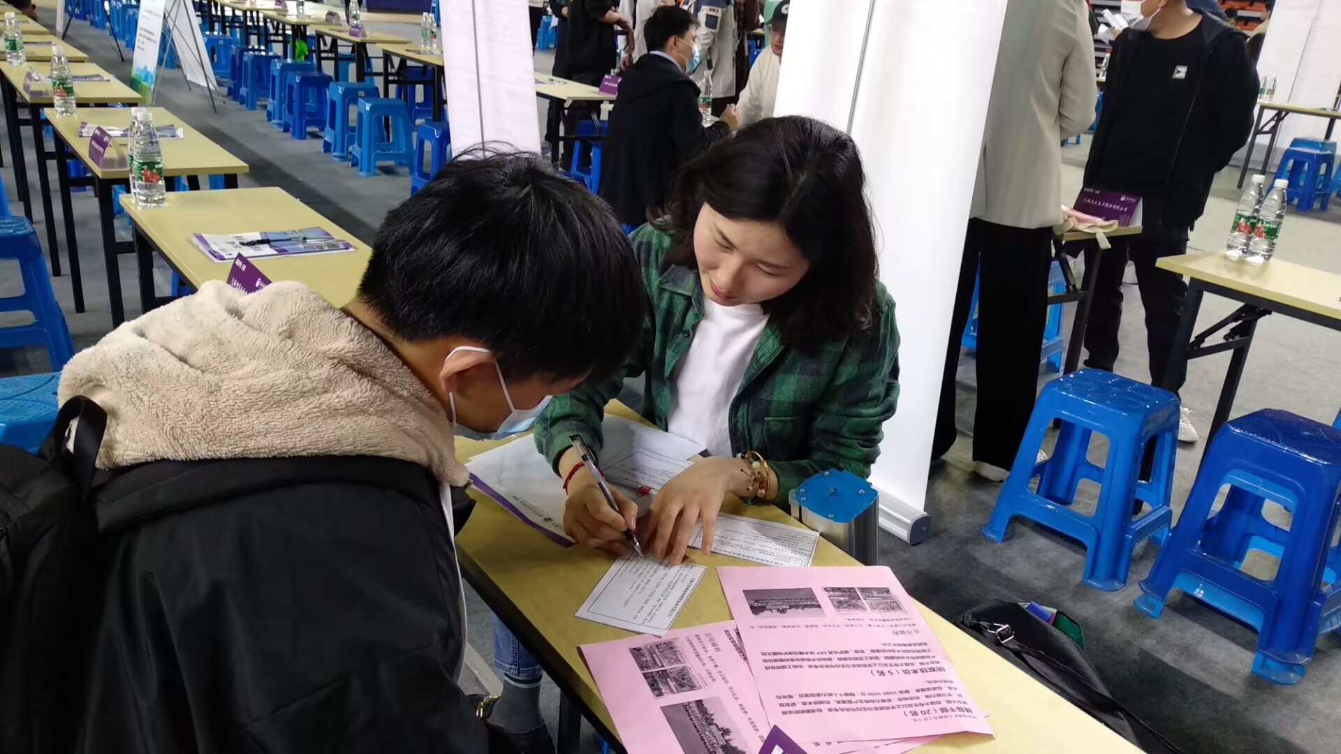 本次招聘会邀请到100多家无锡重点企事业单位,包括江苏苏嘉集团有限公司、江苏通用科技股份有限公司、中国电子系统工程第二建设有限公司等优质企业。提供岗位2200余个,涉及机械、计算机、自动化、人工智能等多个专业,招聘岗位、需求专业与beat365官网专业设置契合度高,备受毕业生关注与青睐。毕业班辅导员始终为毕业生提供就业指导和建议,面对气氛热烈的招聘会现场,beat365官网学生情绪高昂,主动了解各行业的发展趋势、职业前景及招聘需求,积极投递简历,为自己的未来规划提供更多的参考。招聘企业热情向咨询学生发放公司宣传手册,与同学们开展深度沟通。