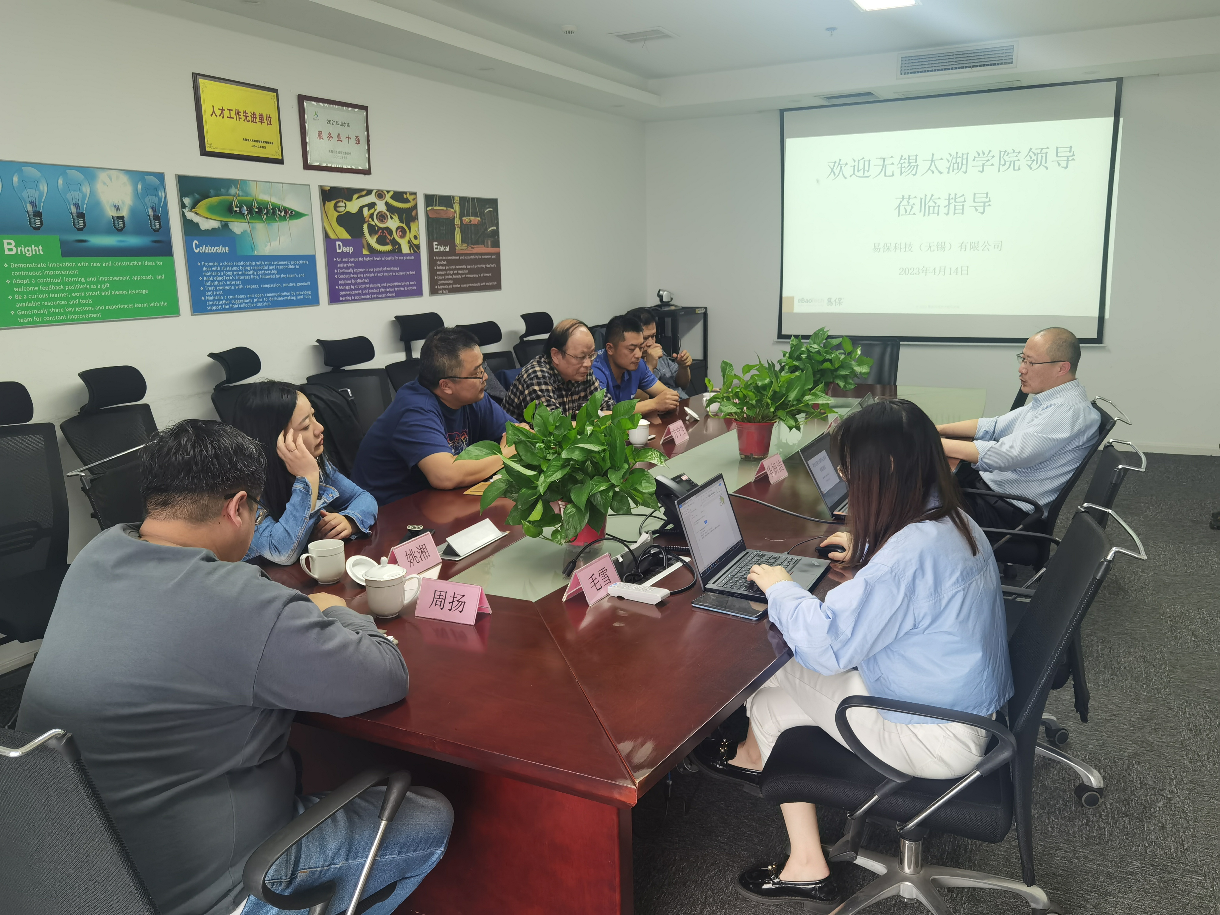 根据学校相关要求及招生就业处的统一部署,物联网工程学院开展了"访企拓岗"活动,通过"走出去"和"请进来"相结合的方式与相关单位建立就业合作渠道,搭建校企交流合作平台,深化学院和用人单位的供需对接。4月14日下午,物联网工程学院党总支副书记沈峰、副院长方宁生、王华君率领计算机科学与技术专业周扬,物联网工程专业姚湘,软件工程专业姚晓峰等一行六人分别到江苏骏安信息测评认证有限公司和易保科技(无锡)有限公司进行考察交流。江苏骏安党委书记、副经理周文宇、技术总监俞炫,易保上海总部人事总监Karl、无锡分公司人事主管Daisy,分别进行了热情接待。