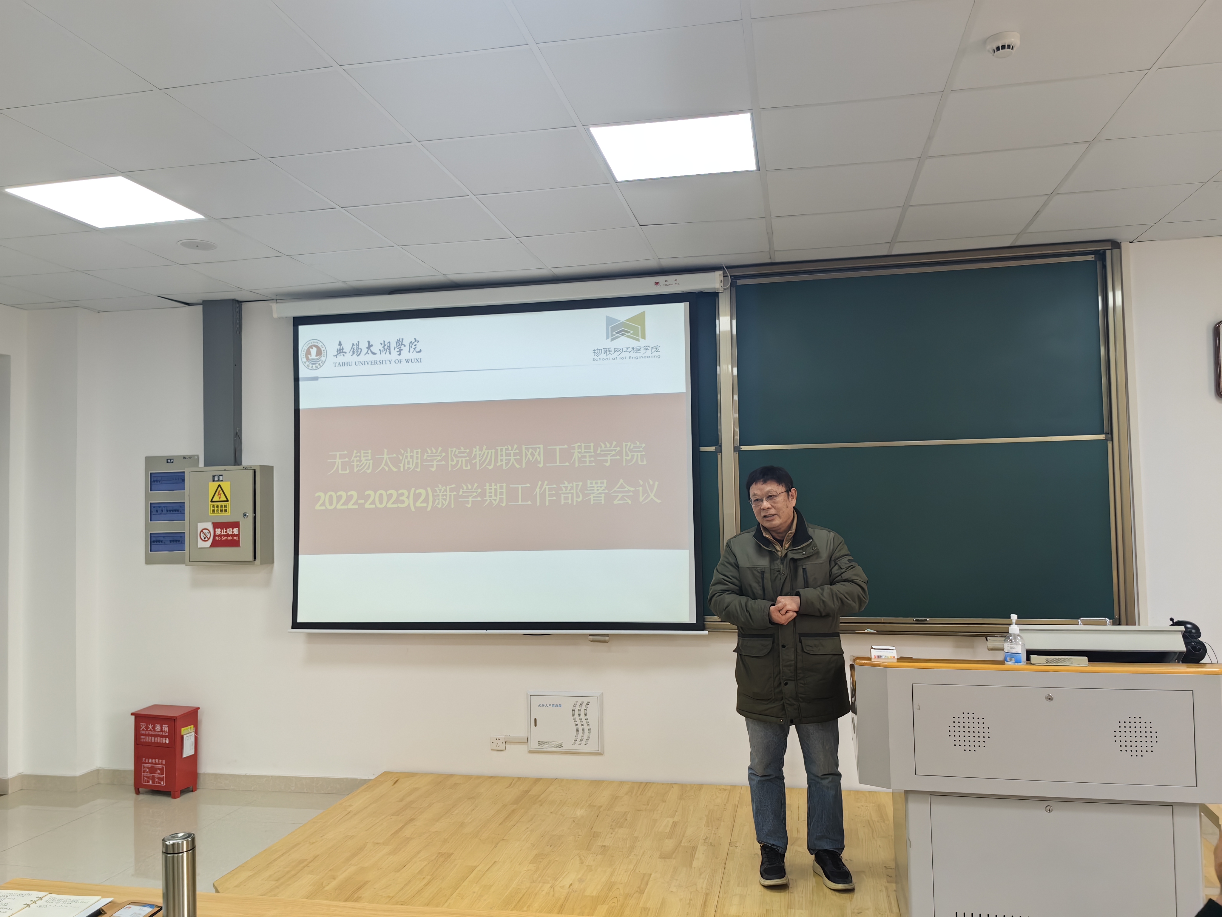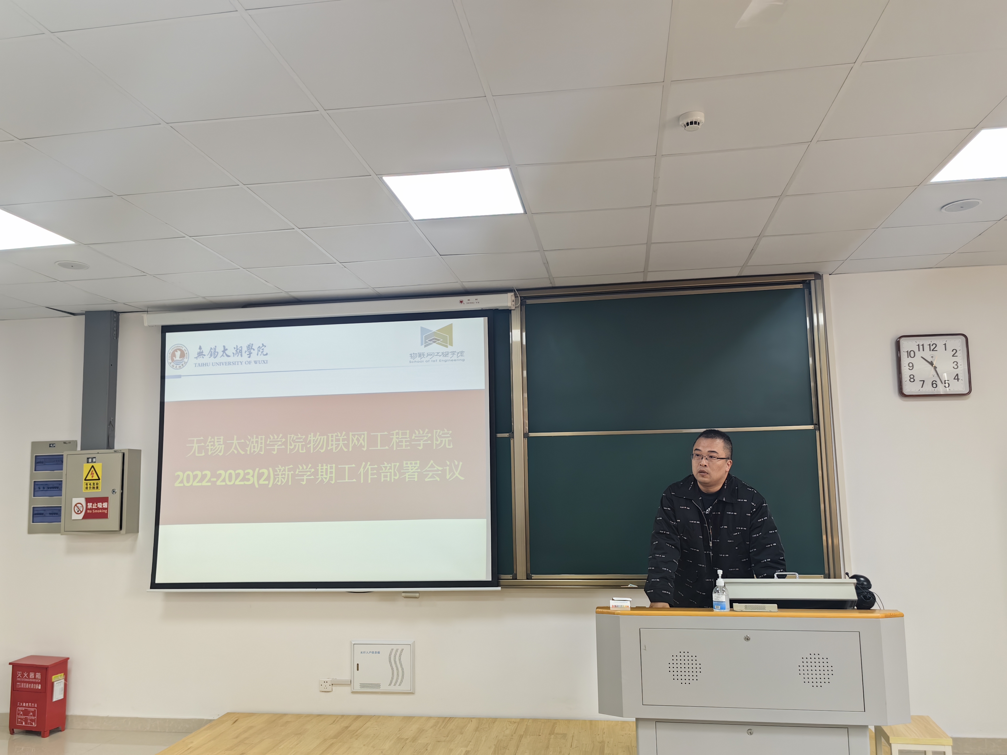 物联网工程学院于2023年2月19日在工科实验大楼A403教室召开2022-2023-02学期工作部署会议,传达学校新学期工作部署会议精神,研究部署春季学期开学及重点工作。学院副院长王华君主持会议,物联网工程学院全体教职工参加会议。