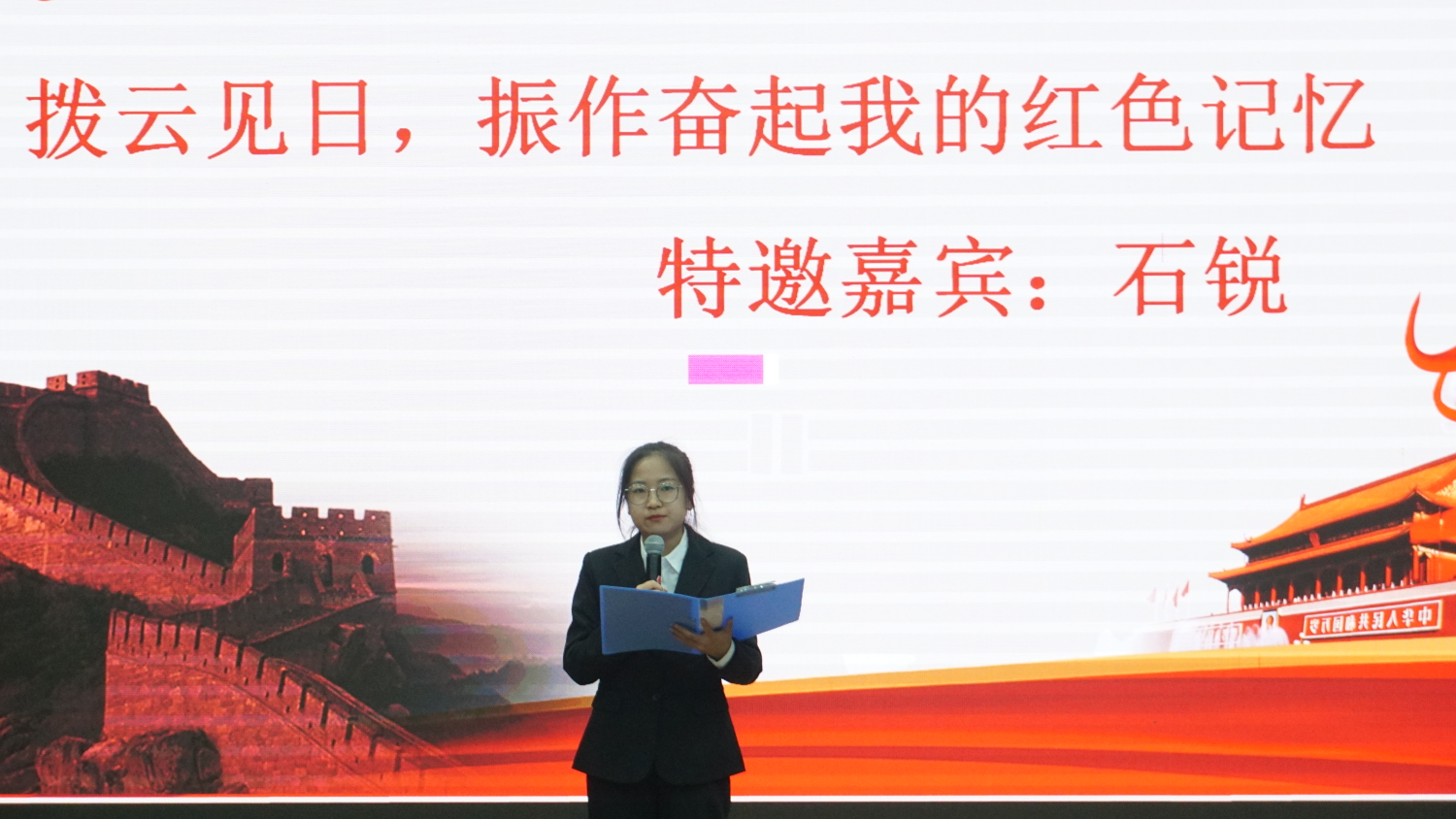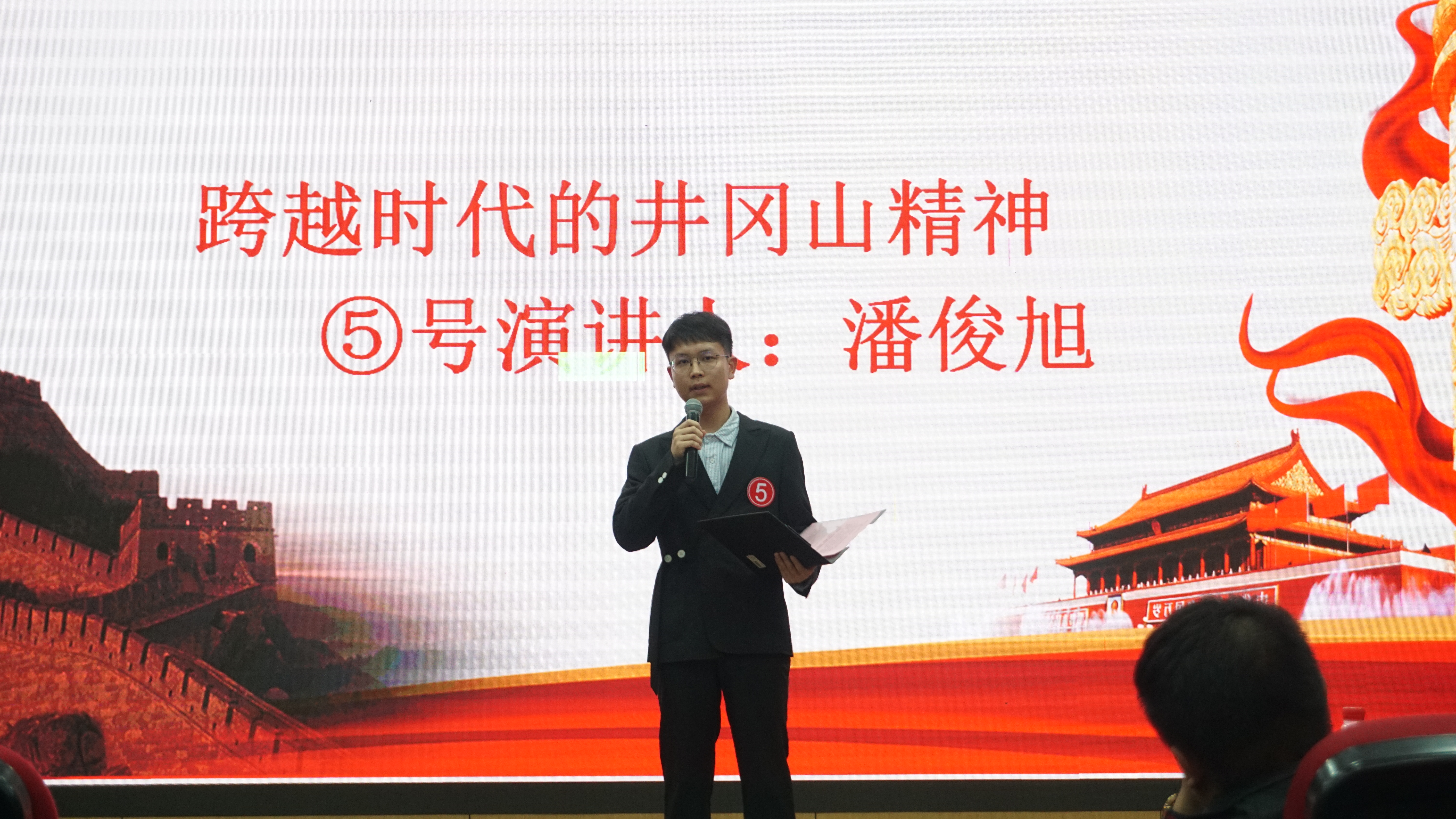 演讲最后,由特邀嘉宾AI2101班石锐带来演讲《拨云见日,振作奋起我的红色记忆》,激昂慷慨的演讲,无不透露着对祖国的情感,它也深深地感染着在座的每一位观众。