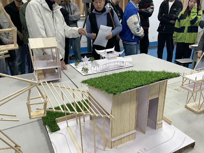 比赛开始前,同学们拓宽自己的思维,发挥自己的创造力,从材料选材、结构构思等方面都认真用心地做了相应的功课,他们将生活之美融于艺术,经过一周的精心制作,11月18日,他们将独具匠心的建筑模型作品带到比赛现场进行评比。