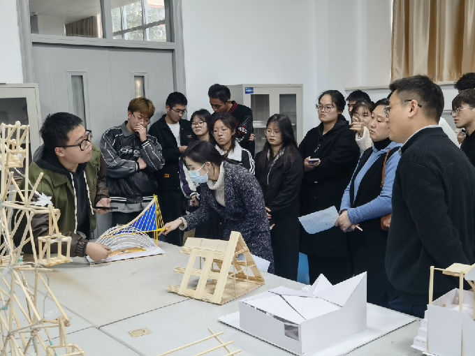 为丰富校园文化生活,营造积极学习的氛围,培养同学们在专业方面的创新能力和实践能力,增强同学们力学概念及结构概念方面的了解。11月18日下午13:30,智能建造学院结构创新协会于工科大楼B122建筑模型实验室举办建筑模型大赛。本次大赛结构创新协会负责人王思月邀请到陶莉老师和翟文清老师,结构创新协会指导老师江雨辰担任此次比赛的评委,参赛同学共有十组。