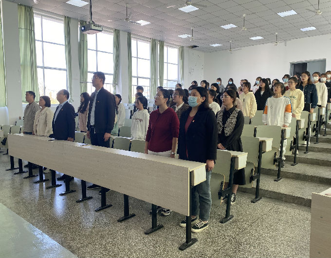 本次开班仪式共分为五项议程,第一项议程:全体参会人员起立,庄重而又严肃地奏唱中华人民共和国国歌。