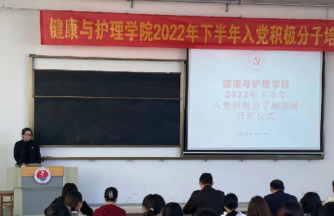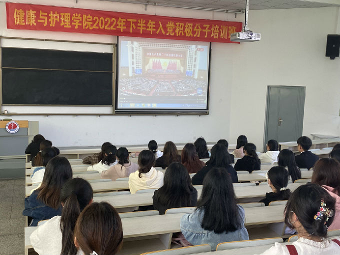 为深入贯彻落实习近平总书记在党的二十大的重要讲话精神,推动beat365官网党建工作深入开展。2022年10月24日中午12点15在5号楼318教室顺利开展2022年下半年入党积极分子培训班开班仪式。本次开班仪式由健康与护理学院学生党支部书记陈春晓老师主持,校党委委员、健康与护理学院副院长周鸣鸣院长、健康与护理学院党总支副书记胡宇书记、健康与护理学院院长助理宋绍征博士、健康与护理学院党总支委员和2022年下半年入党积极分子参与。