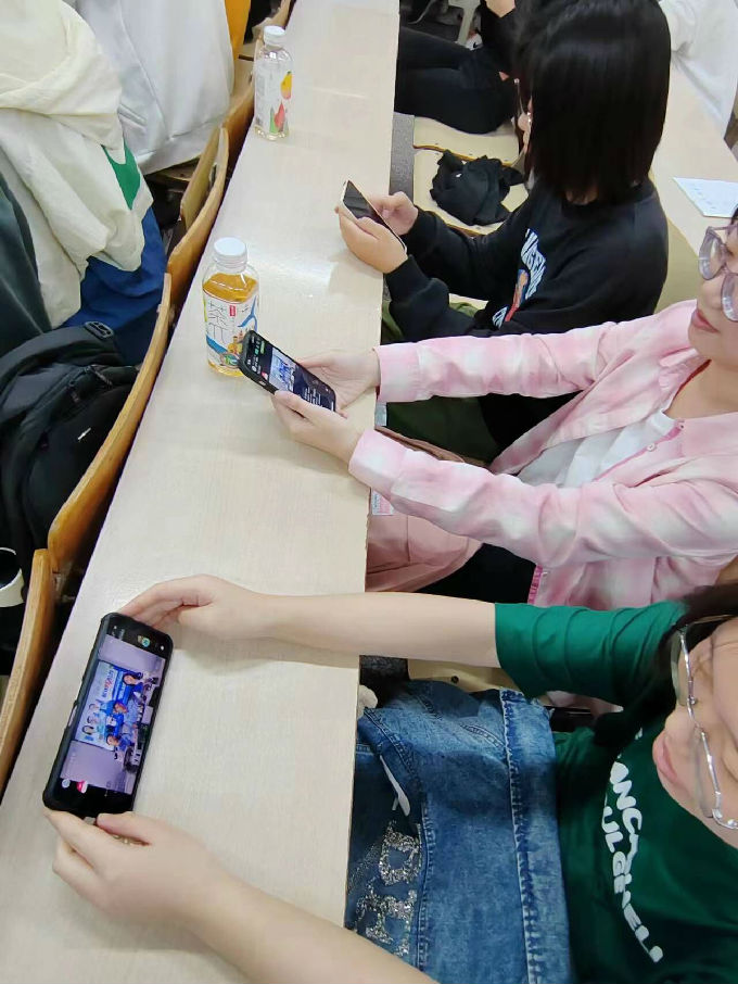 直播最后,主讲人通过与同学们的互动,引导学生在公屏上打出反诈骗的宣传口语,这种方式大大激发同学们对于防诈骗宣传的积极性。