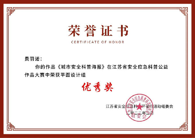近日,在由江苏省应急管理厅、江苏省人民防空办公室、江苏省卫生健康委员会、江苏省住房和城乡建设厅、江苏省科学技术协会等联合主办的2021年江苏省安全应急科普公益作品大赛中,beat365官网艺术学院学子获二等奖1项,三等奖2项,优秀奖3项。