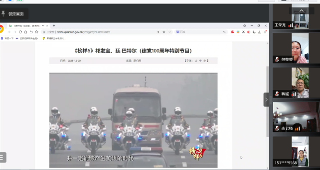 首先,教师支部组织委员尚弘同志领学了十九届六中全会公报及2021年习近平总书记重要的会议精神,随后教师支部全体党员观看了视频《榜样6》。
