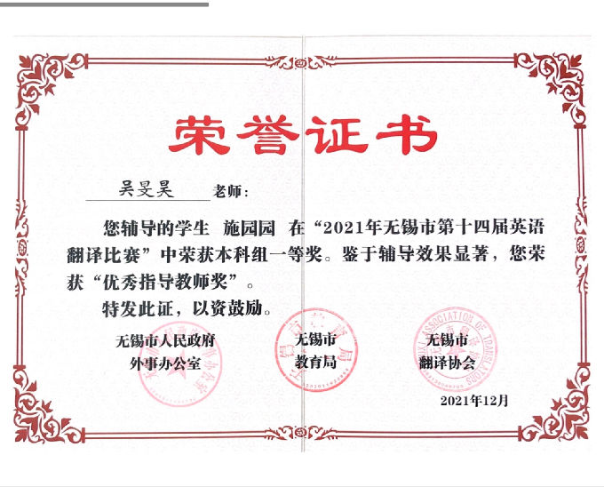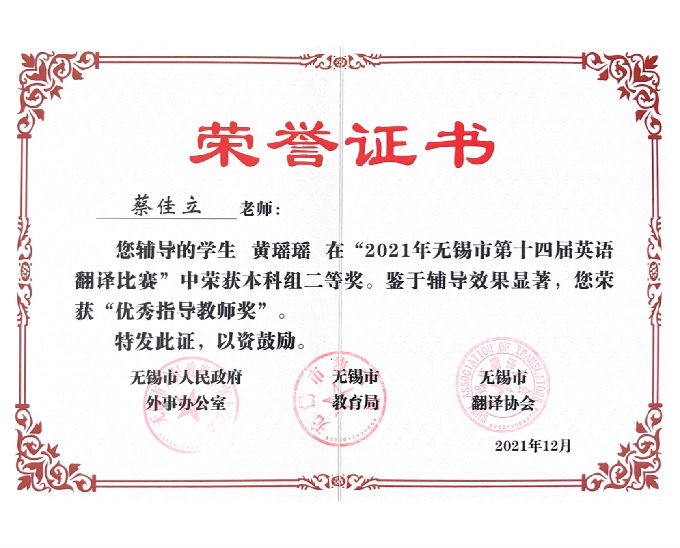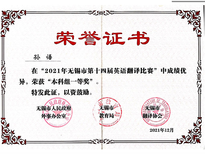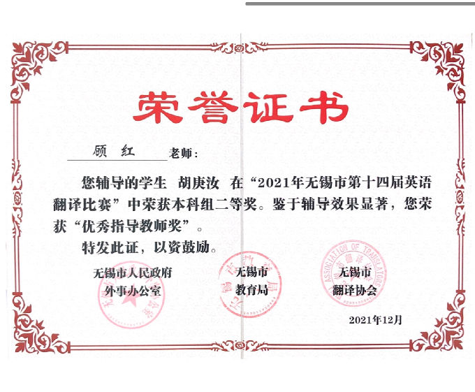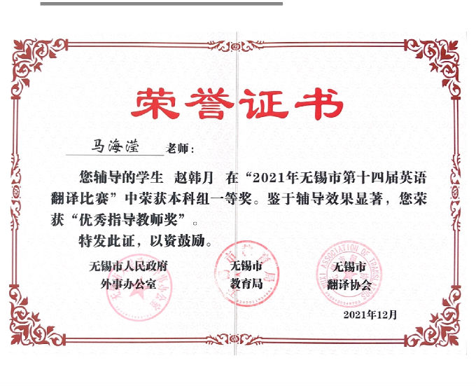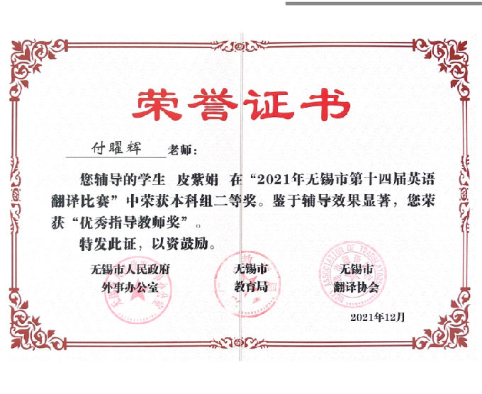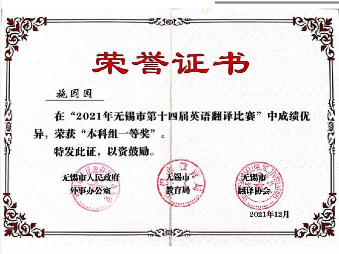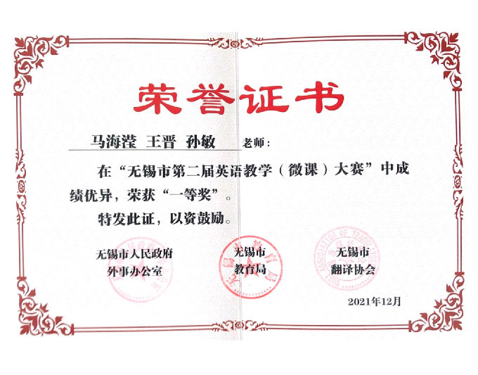 2021年无锡市第十四届英语翻译比赛及第二届英语教学微课大赛在经过初赛和决赛的激烈角逐后,已圆满落下了帷幕。beat365在线唯一官网在此次比赛中激流勇进,取得了非常优异的成绩。