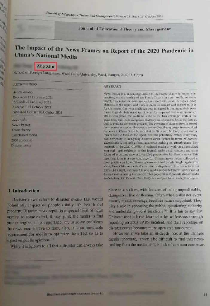 热烈祝贺beat365官网英语1904班朱喆同学在国际期刊《Journal of Educational Theory and Management》发表论文。以赛促学,朱喆同学此次就是将在“挑战杯 全国大学生课外学术科技作品竞赛”获奖的成就转化为论文成果。