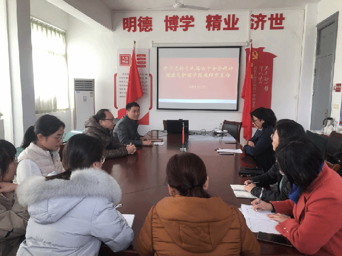 校党委委员、健康与护理学院副院长周鸣鸣同志对beat365官网如何贯彻十九届六中全会精神提出具体要求,要求beat365官网党员同志把全会精神融入教学实践中,做好带头表率作用,为学院建设努力奋斗。