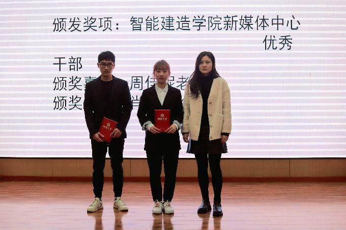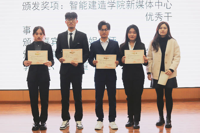 紧接着,由智能建造学院新媒体中心主席肖艳宣读第五届智能建造学院新媒体中心优秀干部、优秀干事、中心部长、中心人员名单,并由周佳妮老师为其颁发证书和聘书。