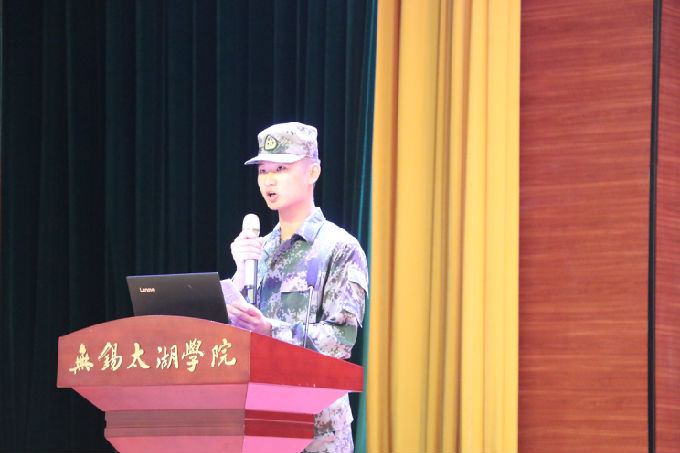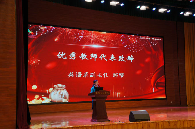 然后由英语系副主任邹璆发言,她借用德国著名教育家洪堡和美国哲学家乔姆斯基的名言表达了对新生的要求和期望,并表示学风建设在于学,同学们要找到适合自己的学习方法。用航天女英雄王亚平的例子激励同学们践行校训和院训。