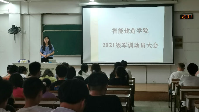 古之立大事者,不惟有超世之才,亦必有坚忍不拔之志。军训作为大学的第一课,不仅仅有对身体的考验、对意志的磨练,更是对新时代接班人精神、品格、人格的培养。为了让学院21级同学们了解军训的意义,激发参训的热情,智能建造学院组织2021级新生在七号楼118教室开展了军训动员大会。会议由21级辅导员戎婷竹老师主持。