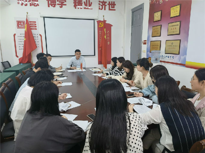 10月11日中午12点半,健康与护理学院在5号楼206会议室召开了2021-2022学年第一学期工作例会,会议由健康与护理学院党总支副书记胡宇主持,学工秘书马晓星、全体辅导员和班主任参加了此次会议。