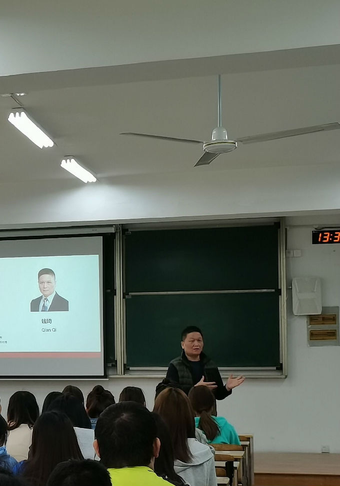 之后钱琦经理现场提出一系列的问题。例如:英语专业的同学为什么要学习现在的专业?学习现在的专业毕业以后希望找到一个怎样的工作?这对于这些,他表示,语言的关键是理解,当下的确紧需英语专业的人才,但是随着科技的发展,许多岗位将会面临着消失的风险,英语专业也不例外。钱琦经理也告诉我们只有存在个人思想的工作才永远都不会被淘汰,我们应该保持自己的思维模式,勇于创新。这样科技再如何发展,计算机也永远不会拥有人的思想,不能够替代人类。
