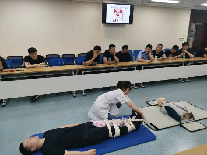 健康护理学院急救协会于5月18日由田静静老师带队,杨鑫雨、项妍、伍淑华三名学生组队,向马山警察学校的同学们展示急救技能。