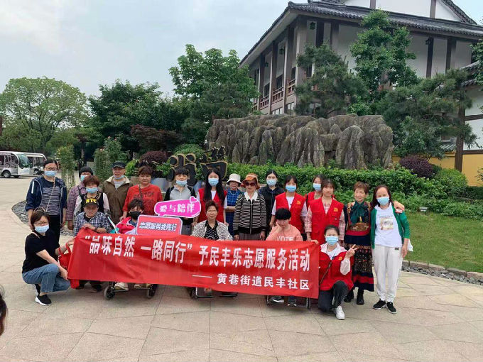 早上7点40分左右急救协会6名志愿者乘车到达了民丰社区服务中心与大家会和,路途的遥远并没有消减志愿者高涨的热情。每位志愿者在社区负责人的安排下协助每一位残障人士上车前往尚田小镇开启他们的快乐之旅。
