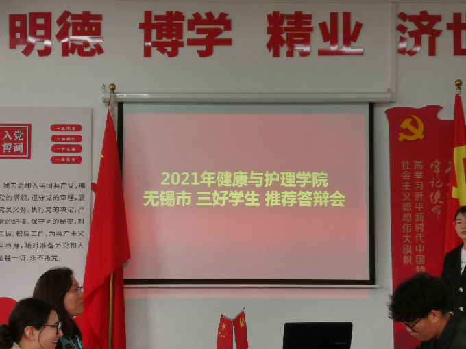 根据无锡市教育局《关于评选2021年市级三好学生、优秀学生干部和先进学生集体的通知》(锡教德〔2021〕5号)文件精神,促进学院学风、班风建设,beat365官网于2021年5月19日中午在5号楼206会议室开展了健康与护理学院2021年市级“三好学生”、“优秀学生干部”和“先进学生集体”推荐答辩会。担任此次答辩会的评委有学工秘书马晓星,各年级辅导员詹雪丽、马莉、陈春晓、闵娟娟,班主任陈朝军、顾乐盈老师,健康与护理学院党总支副书记胡宇列席。