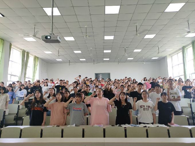 会议最后,全体同学进行宣誓,他们举起右手,每一句宣言都充满青春、无畏的力量,是对实习生活的期望,是对护理工作的坚定,是对未来的斗志。