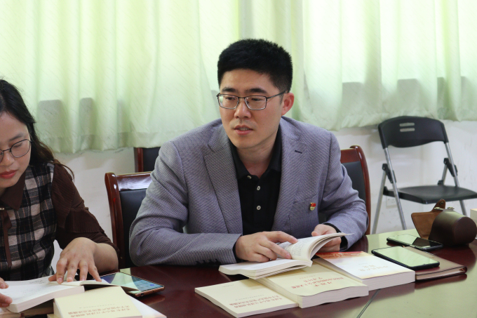 首先,杨敏传达了学校关于组织开展党史学习教育的具体要求、目标任务、活动内容和组织保障等,并为每位党员教师转发校党委购买的《论中国共产党历史》《中国共产党简史》《毛泽东、邓小平、江泽民、胡锦涛关于中国共产党历史论述摘编》《习近平新时代中国特色社会主义思想学习问答》等党史学习教育教材。随后,由党总支副书记杨学圣进行习近平《论中国共产党历史》导读。杨书记强调,“学党史、悟初心、办实事”,要用理论知识指导实践工作,实现精神凝聚。他还鼓励党员教师,要把学党史与教学、课程思政等融合,在新时代的背景下,实现红色基因的延续。