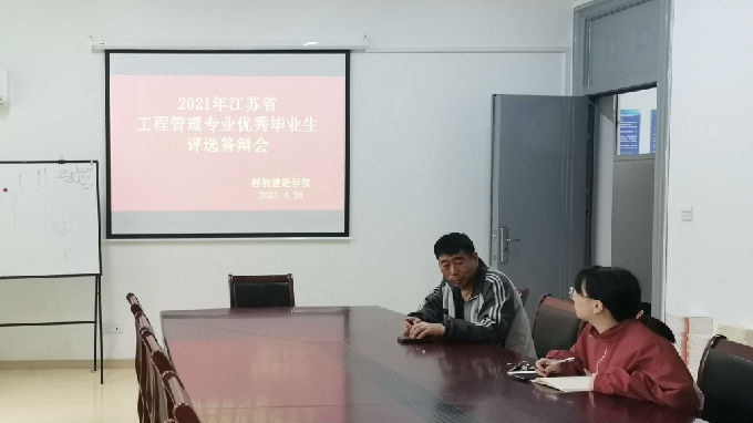 为表彰先进,树立榜样。2021年4月28日下午,智能建造学院在13号楼210会议室举行2021年江苏省工程管理专业优秀毕业生评选答辩会,会议由学院学工秘书朱敏老师主持,毕志远老师和方周妮老师作为评委出席会议,参与此次答辩的是来自工程管理2021届的四位优秀学生。