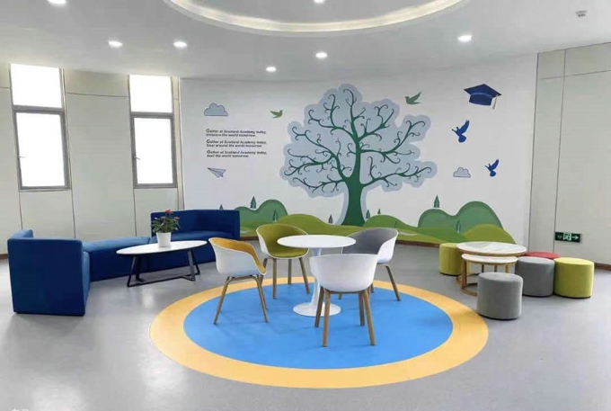 苏格兰学院的特色之一就是由中外教师团队共同实施英语教学,选用国际著名英文教材,英文讲授、英文作业、英文测试,帮助学生用英文思考问题、理解问题。为了营造“全英文”日常生活、学习场景,学院的教学、生活环境布置从细节做起,还任命了小班化英语教学老师担任学生辅导员。