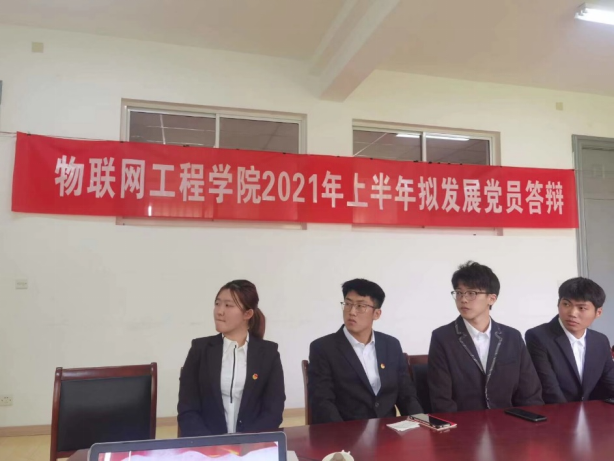 拟发展党员陈述完之后,支部学生代表武军凯和曾毫同志紧接着又对拟发展党员进行了“党史知识”的提问。然后,物联网工程学院学生第一党支部书记王莺同志根据拟发展党员的入党动机、入党意愿以及今后如何更好发挥带头模范作用等方面进行了提问和并对拟发展党员提了几点建议。