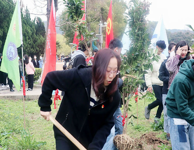 “生态校园‘艺’起植”——艺术学院组织艺院学子进行3·12植树主题活动,于3月12日在经管中心旁空地举行。