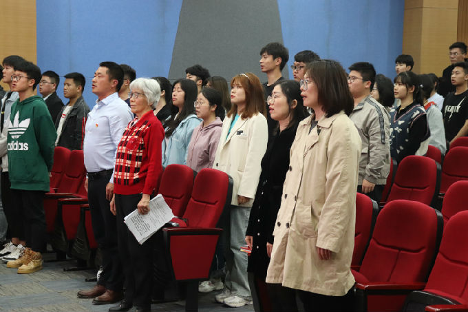 会议第四项议程,全体起立,共同奏唱共青团团歌,主持人宣布开班仪式圆满结束。