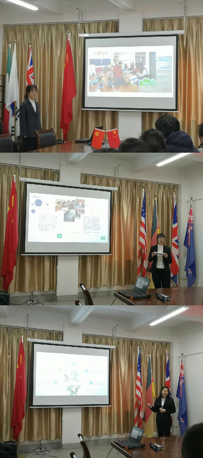 其后,商英1803班作为市、校、院先进班集体,由班长朱洁代表,向全体展示了班级风采。