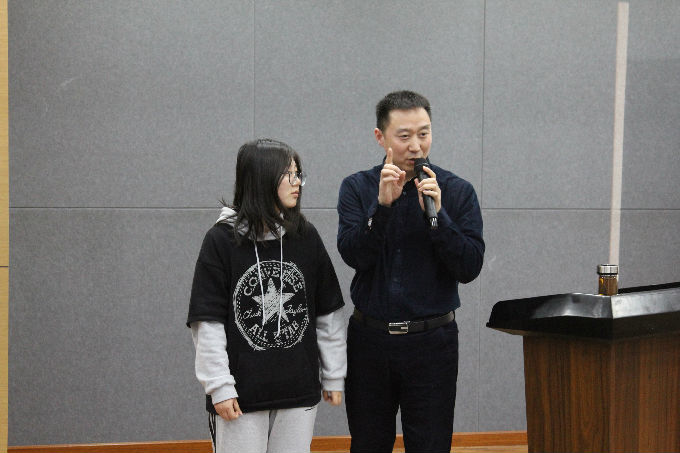 讲座伊始,王主任首先通过和在场的一名同学互动进行一个“照镜子”的小游戏来活跃现场气氛。紧接着,王主任师向同学们讲述了如何在与人交流时运用说话技巧。例如巧妙地使用连接词,先是说出几句令对方认为正确的话,随后再说出自己的请求,如此可大概率实现自己的愿望。王主任告诉大家:压力会带来负面情绪以及转变情绪最主要的是要有积极的态度。情绪是沟通的杀手,只有等情绪稳定之后,才能进行良好的沟通;并且,每个人不能以情绪为由波及或伤害他人。