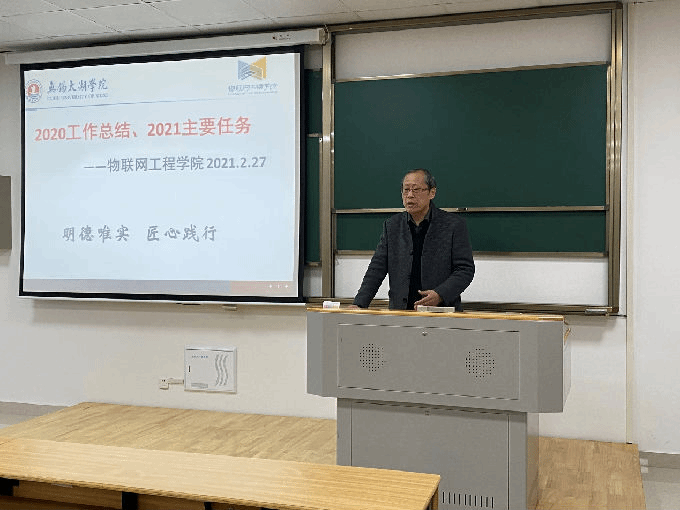 2月27日上午9点,物联网工程学院全体教职工在工科大楼A403召开了2020-2021学年第二学期全院教职工大会,学院院长惠晶,副院长方宁生,党总支副书记沈峰以及物联网工程学院全体教职工参加此次会议。