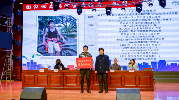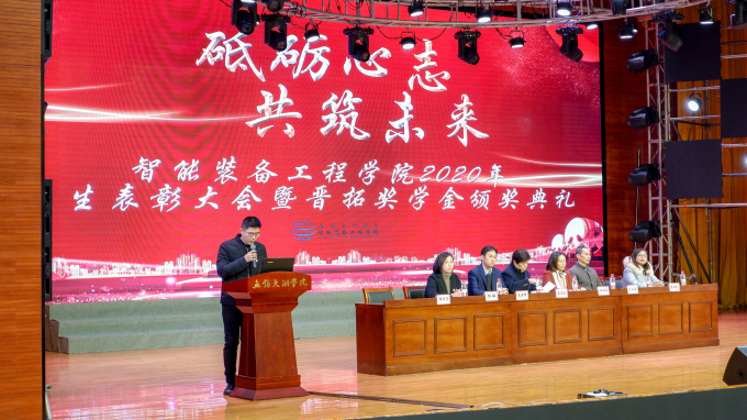 12月18日下午,智能装备工程学院2020年学生表彰大会暨晋拓奖学金颁奖典礼在工科楼报告厅隆重举行。无锡晋拓材料科技有限公司行政总监邱丽萍、副总经理王建辉受邀出席大会。智能装备工程学院院长袁惠新、教学副院长杨敏、机械工程专业主任杨汉嵩、机械电子工程专业主任张亚勤参会,在校全体师生到场观摩。大会由党总支副书记杨学圣主持。